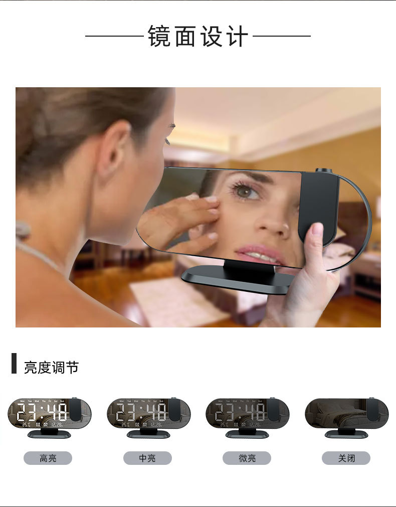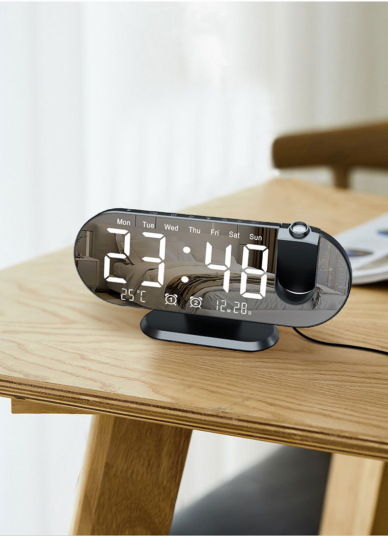 多機能RGBラジオ投影時計クリエイティブLED目覚まし時計温湿度デジタル投影時計鏡面電子時計