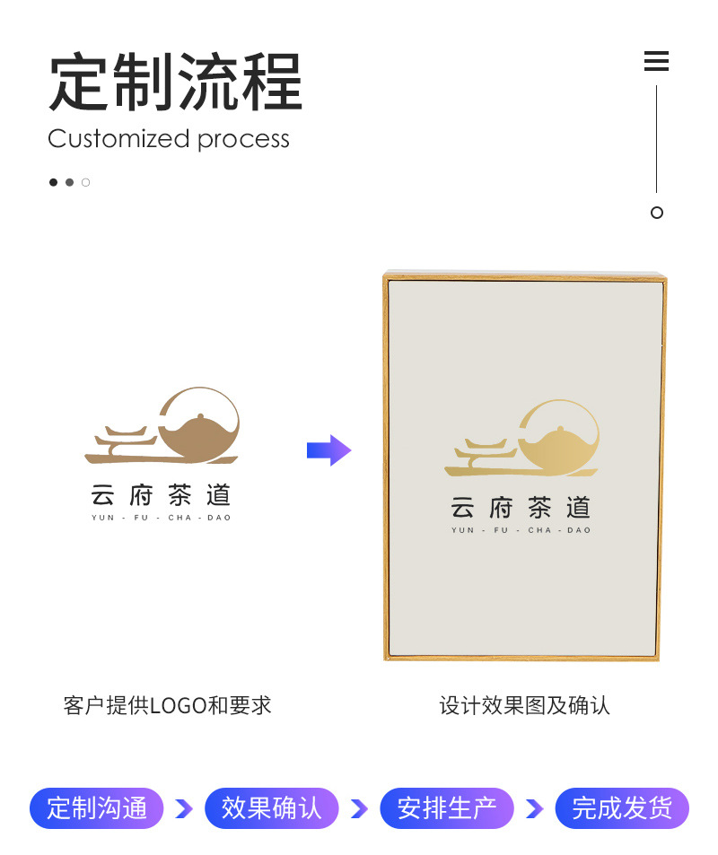 茶のギフトボックスのオーダーメイドのロゴの天地のふたを開けてプレゼントの箱を開けます。
