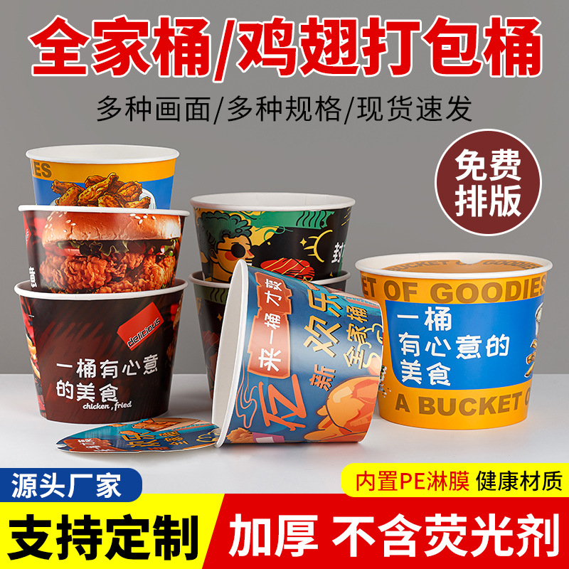炸鸡全家桶5000起可定制logo鸡翅打包桶欢乐全家桶烘焙一次性纸桶