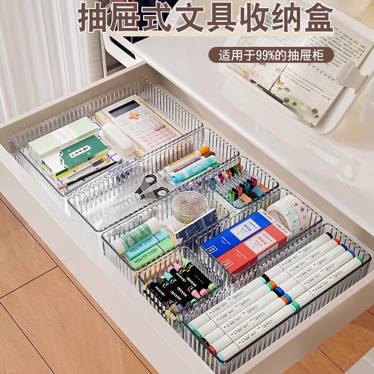 抽屉分格收纳盒办公桌橱柜内置文具笔长方形塑料书桌整理小放置盒
