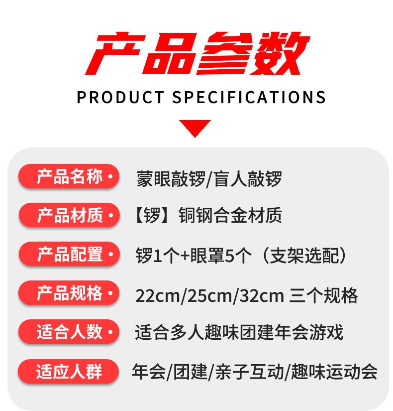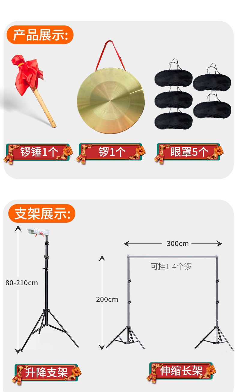 22CMゴング1個+ハンマー1個+アイマスク5個,25CM厚ゴング+ゴングハンマー+アイマスク5個,32CM 厚みのあるゴング + ゴングハンマー + 5 つのアイマスク,昇降ゴングフレーム 1 個 + 22CM ゴング 1 個 + ハンマー 1 個 + アイマスク 5 個,25CM 厚みのあるゴング + ブラケット + ゴングハンマー + 5 つのアイマスク,32CM 厚みのあるゴング + ブラケットゴングハンマー + 5 つのアイマスク,拡張ブラケット (2* 3m ) にはゴングは含まれていません,ゴングハンマー1個