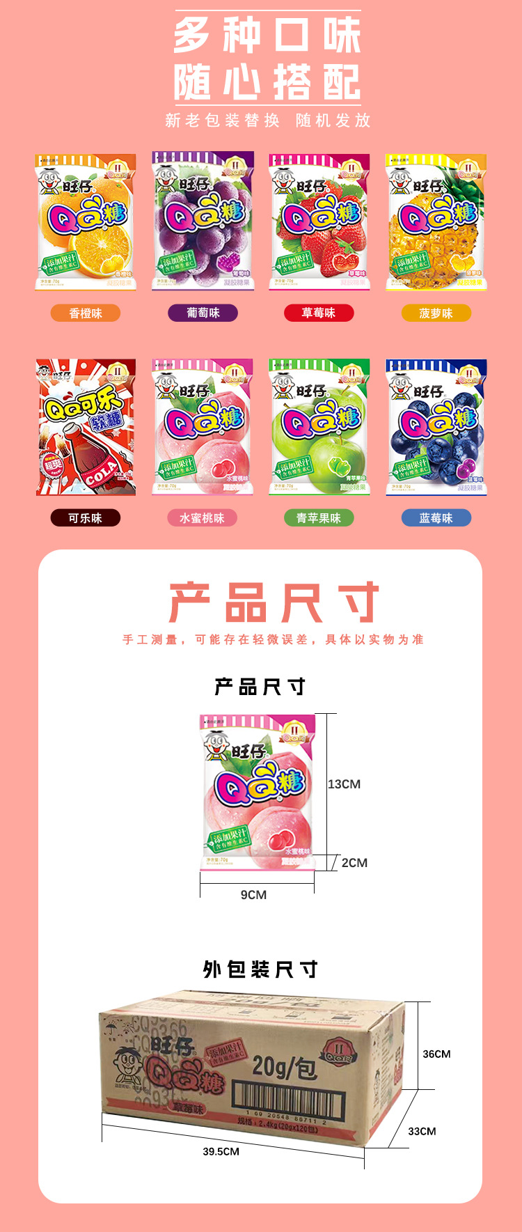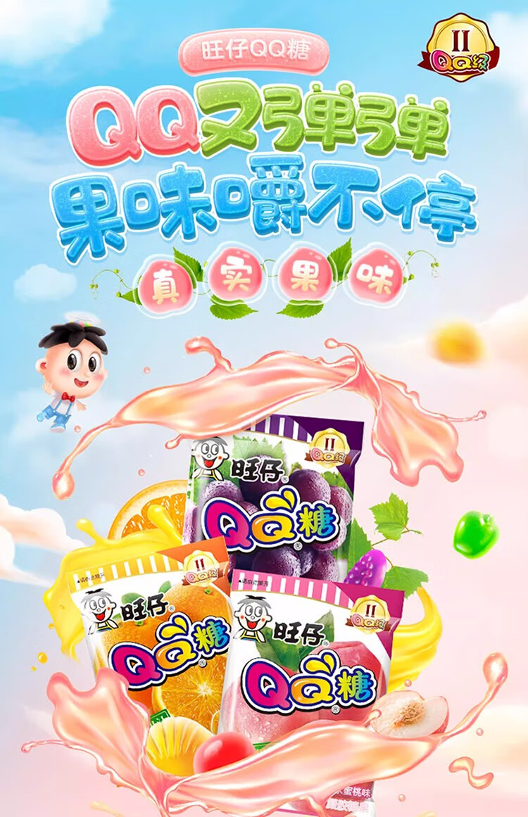 旺旺旺仔QQ糖水味ジュースソフトキャンディキャンディースナック70gフルケーススーパー食品大卸売り
