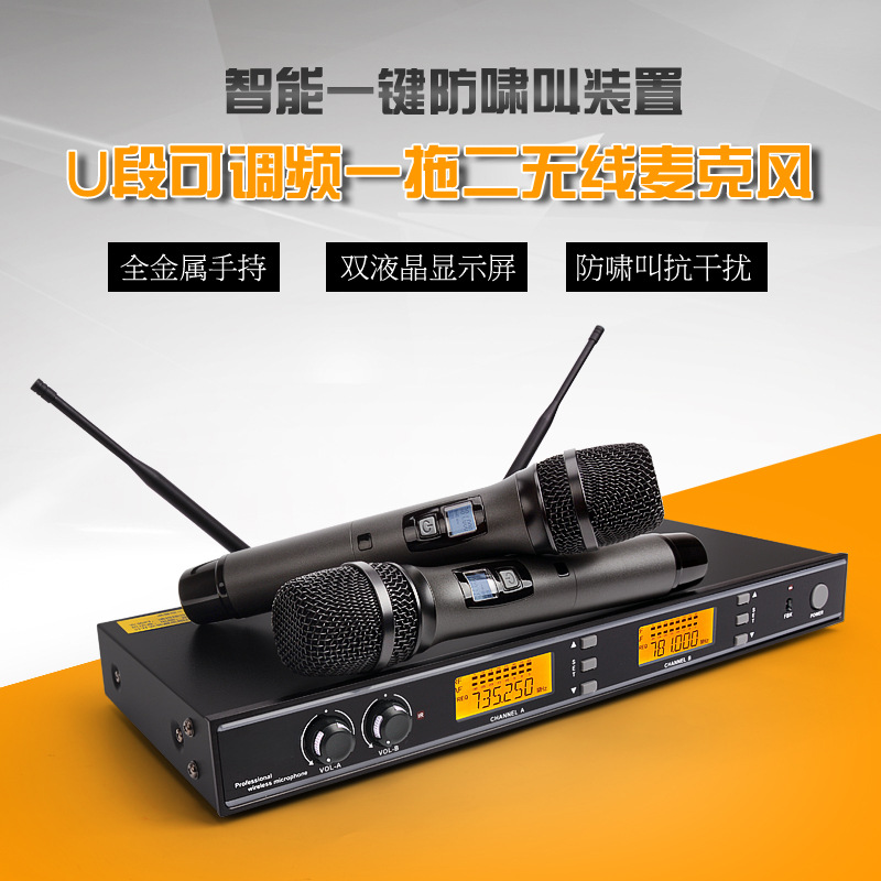 舞台演出无线麦克风话筒KTV专用家用U段调频一拖二无线手持话筒