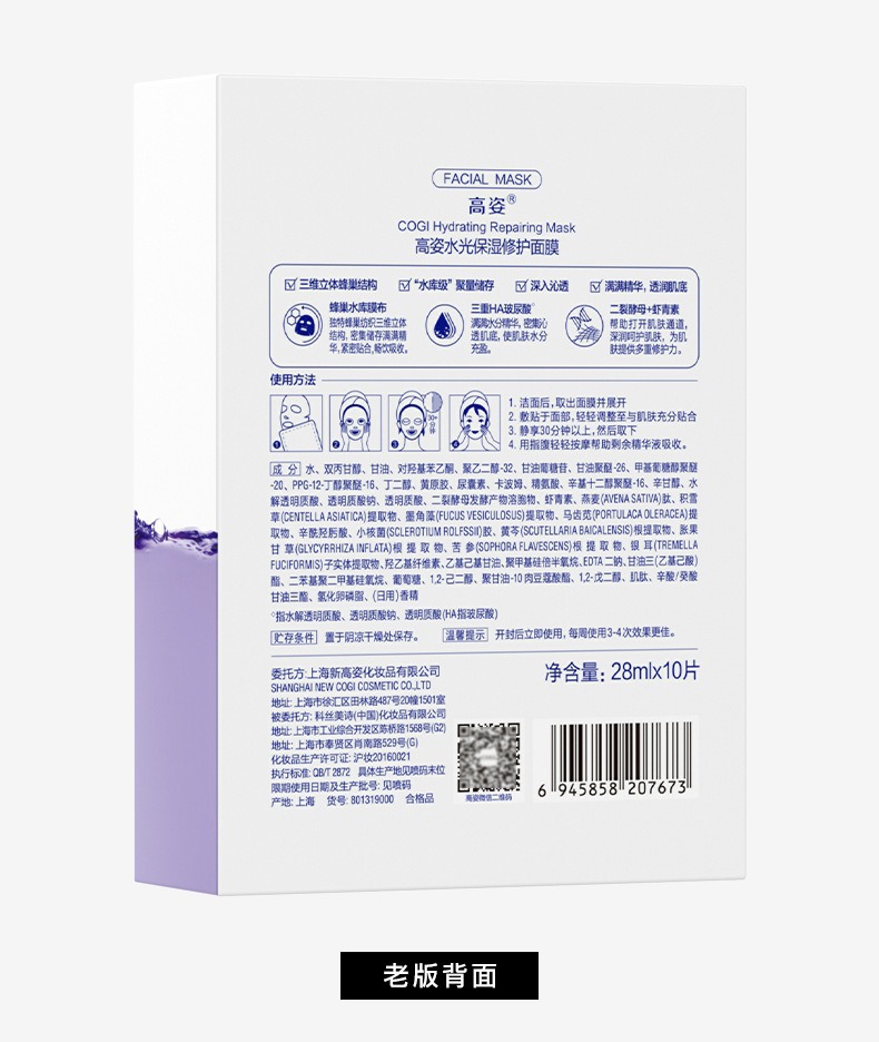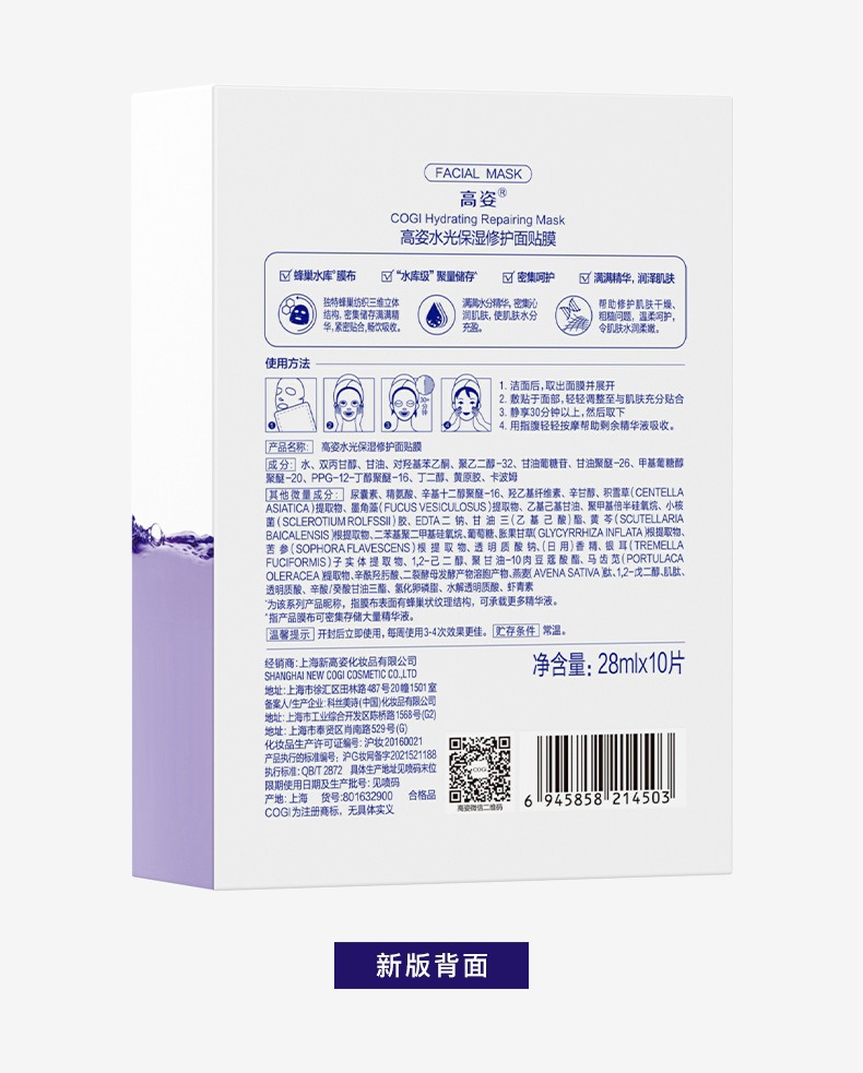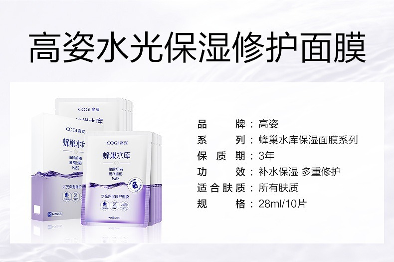 COGI高姿マスク蜂の巣ダムロック水修理透亮女盈潤青紫水活修理夜更かし肌