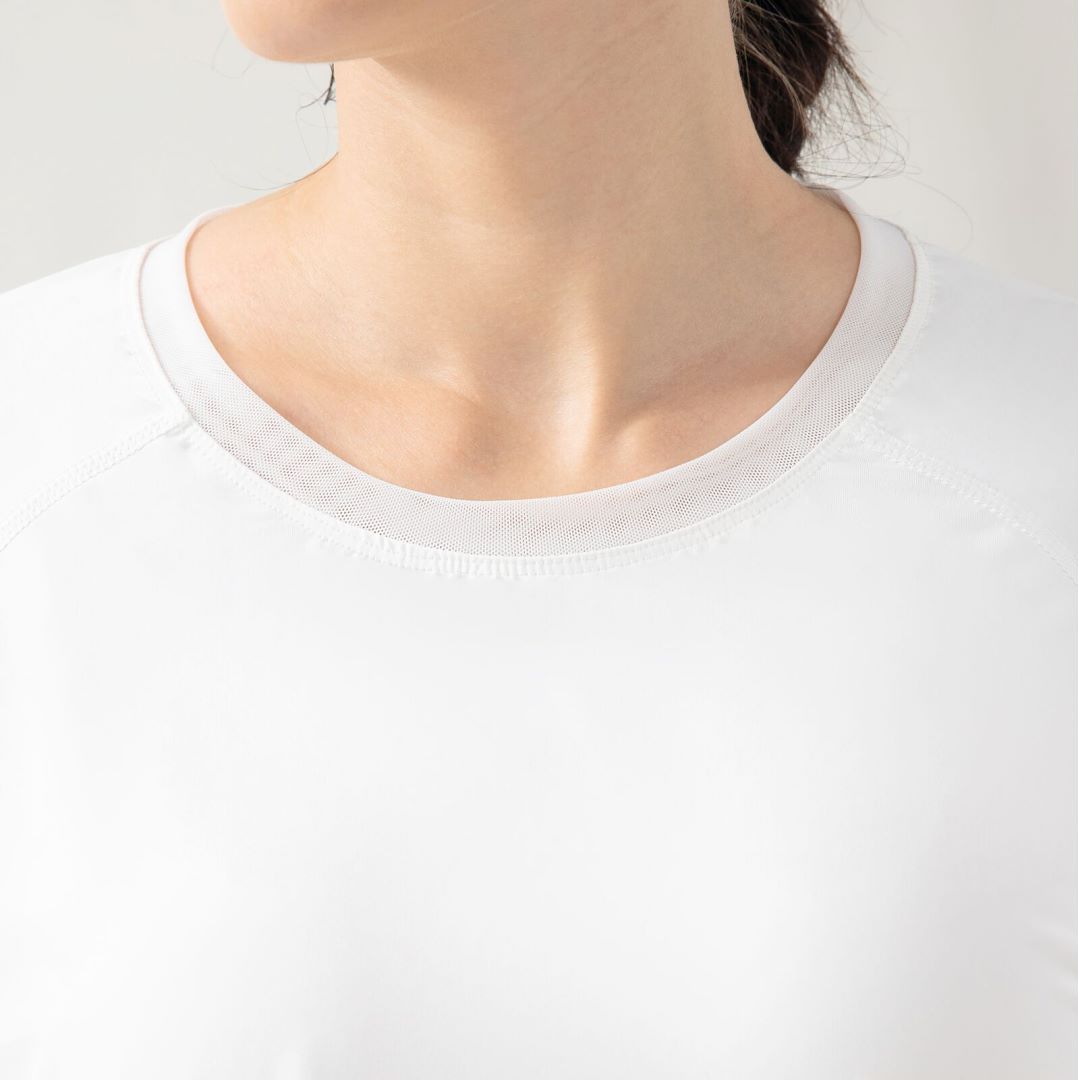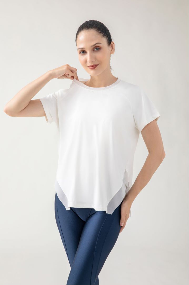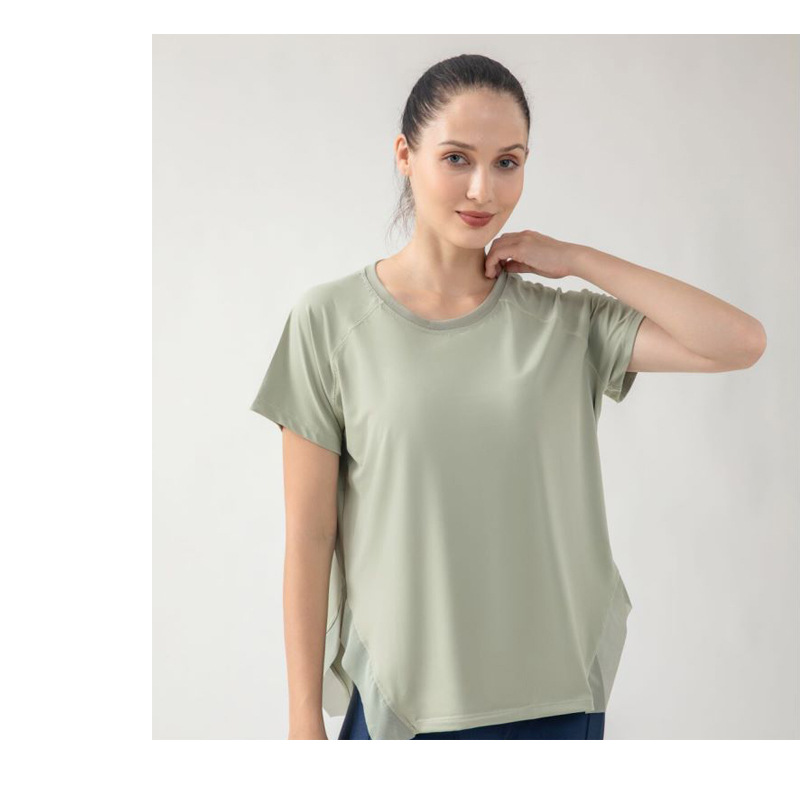 新しい丸首tシャツ女性運動速乾ランニング上着ネット糸は通気性のあるヨガ運動半袖をつなぎ合わせている