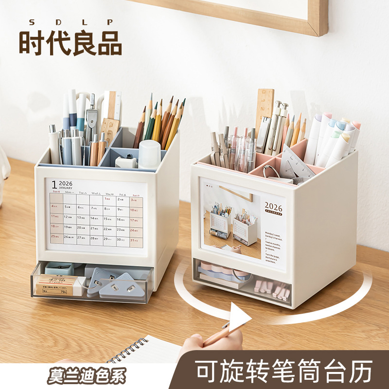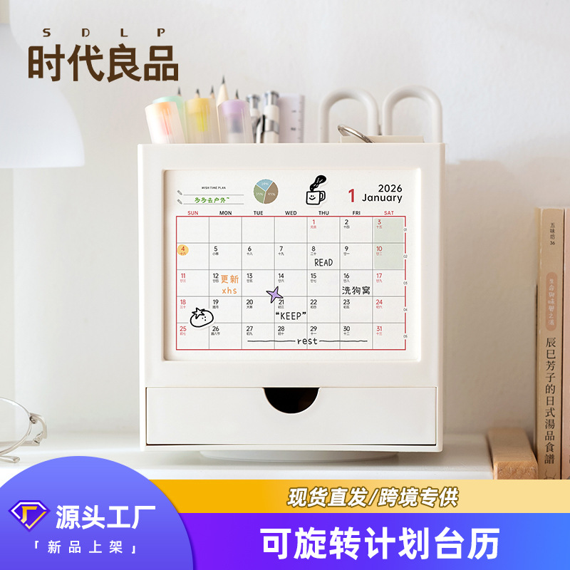 旋转笔筒26年新款台历创意两用塑料收纳盒学生桌面计划记事收纳