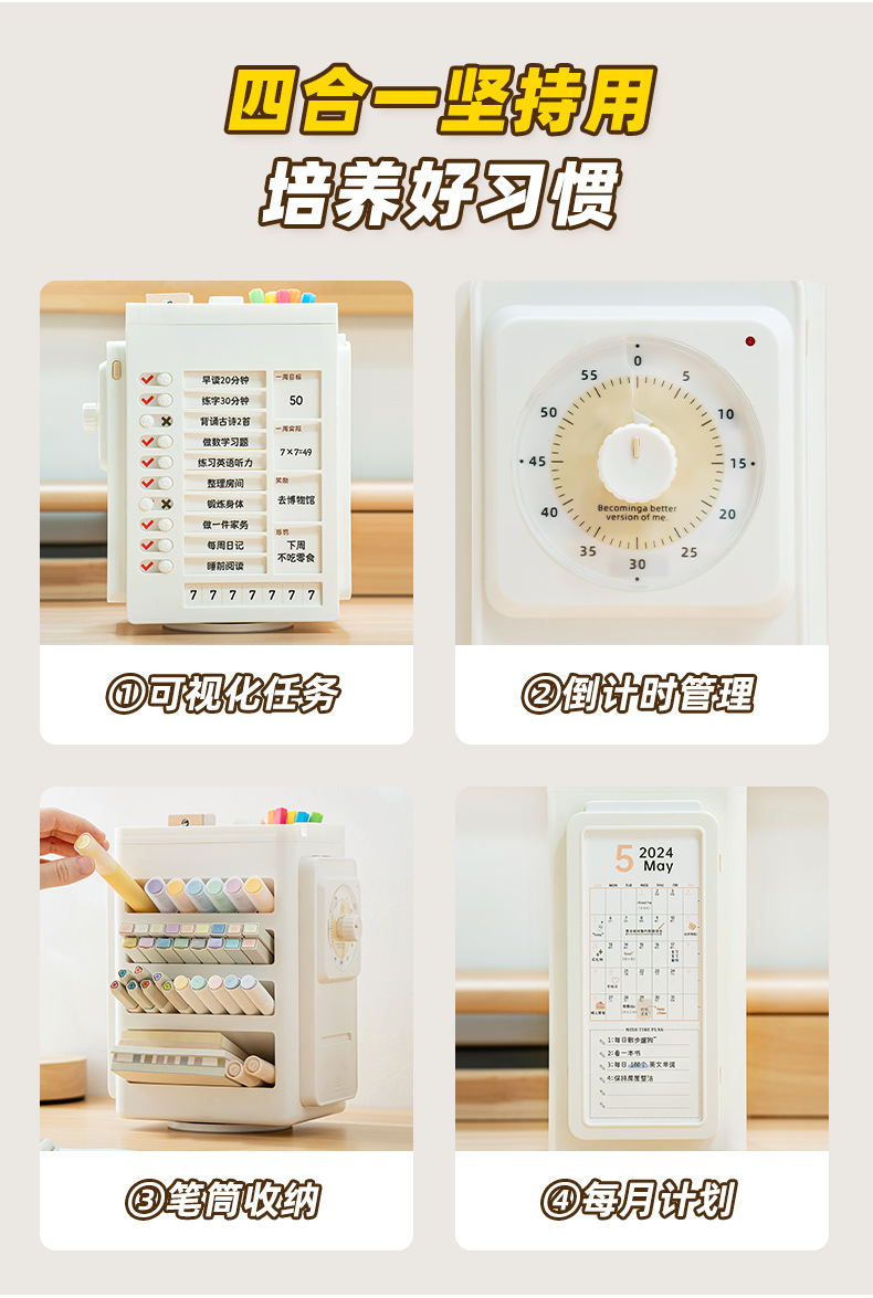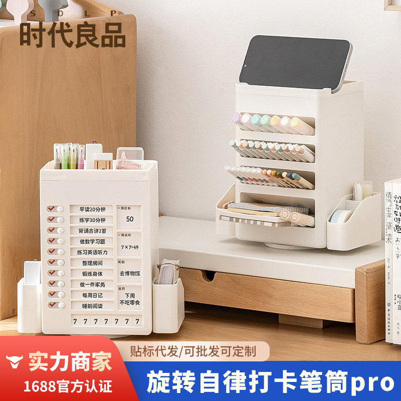 旋转笔筒儿童二合一笔筒收纳盒宝宝打卡器多功能大容量学习计划表