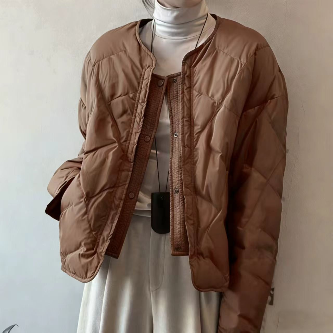 菱形綿コートレディースショートノーカラー2025冬新スタイル前立て付きダウンコットンコート軽量綿ジャケット外国貿易ライブブロードキャスト