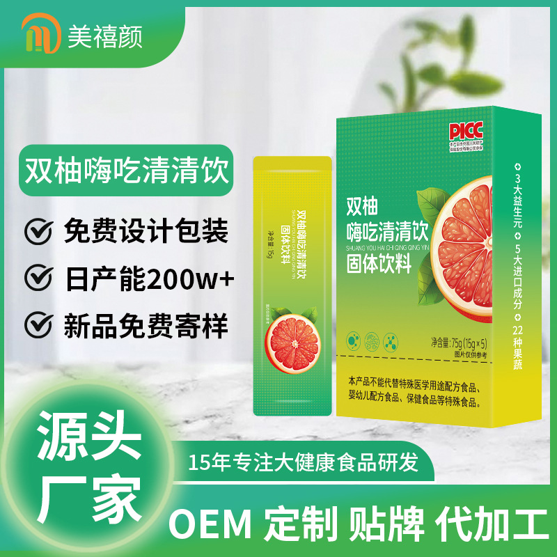 ダブルグレープフルーツハイチークリアドリンク強化版OEM果物と野菜の酵素粉末OEMプロバイオティクス食物繊維固形飲料