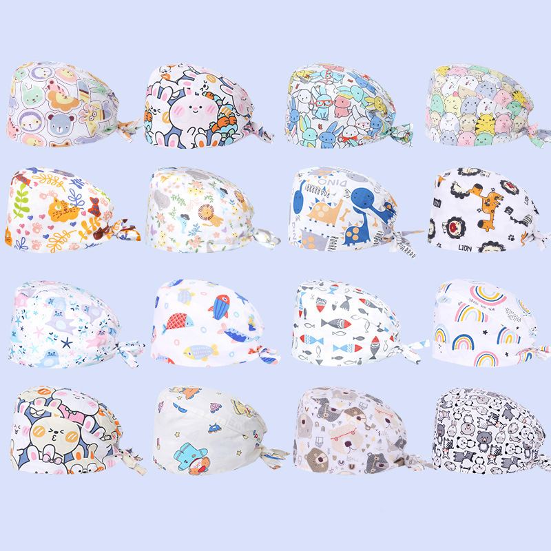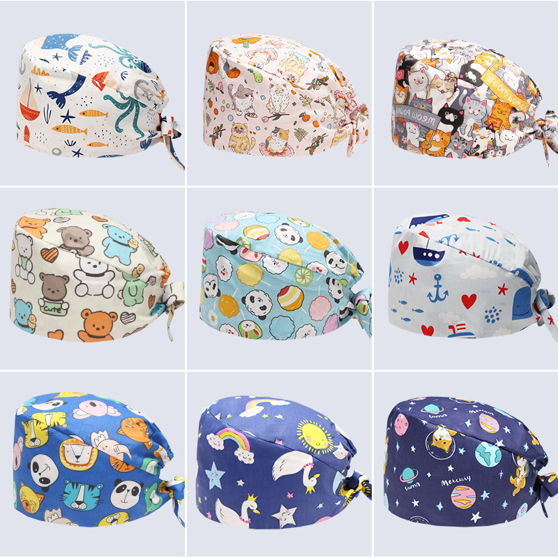 手術用帽子 女性用 純綿 手術室作業帽 看護師用花柄帽子 歯科医師用帽子 吸汗性 男性用 包頭漫画医療用