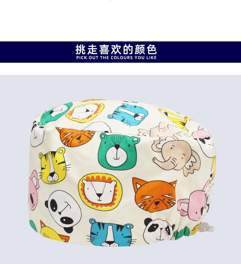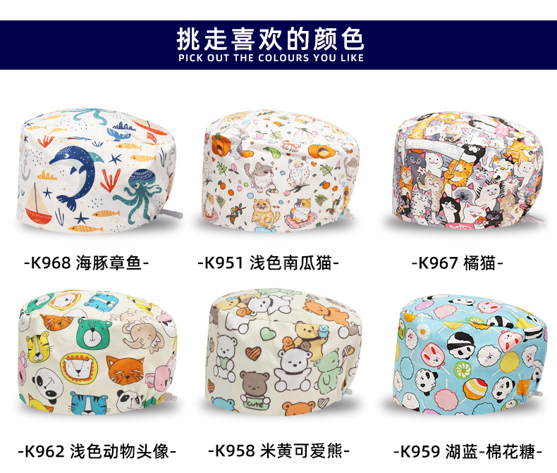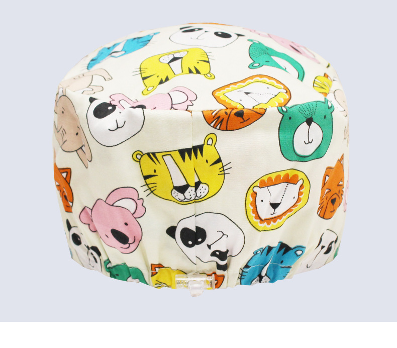 手术帽调节扣亚马逊外贸纯棉女护士帽包头帽印花无檐帽口腔牙医帽
