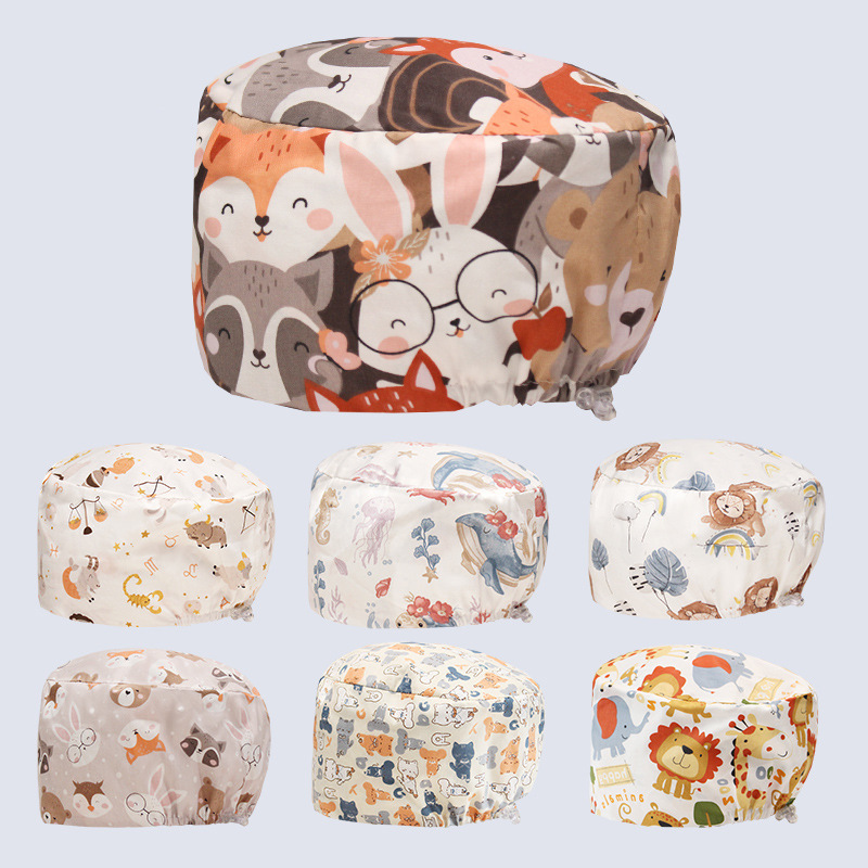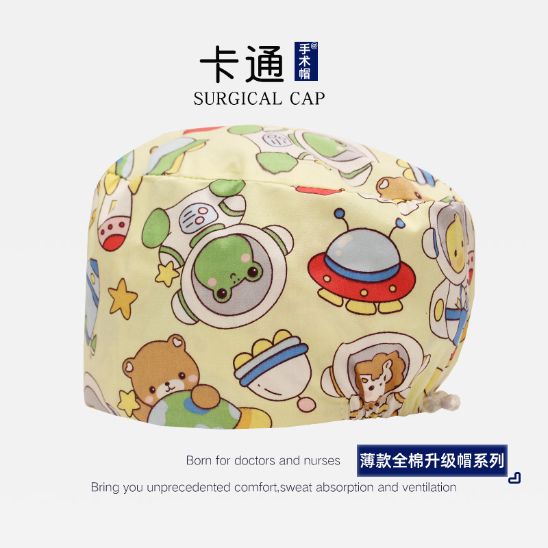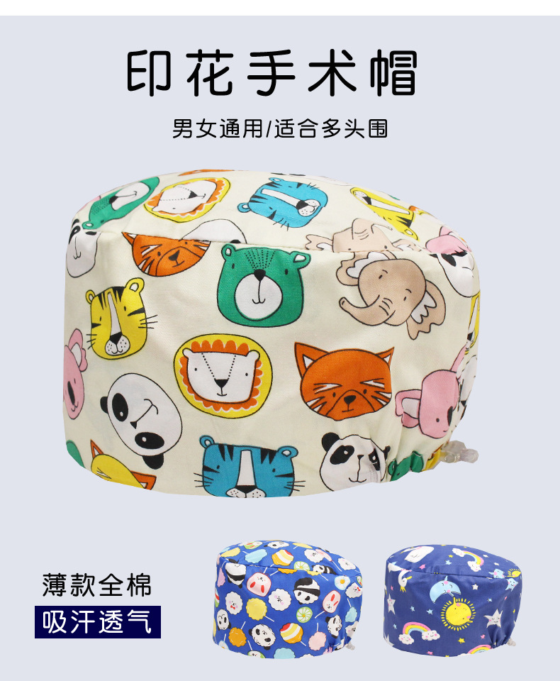 手術用帽子 女性医師 看護師用帽子 純綿丸帽子 手術室専用帽子 医師用作業帽 包頭帽 男性用漫画柄