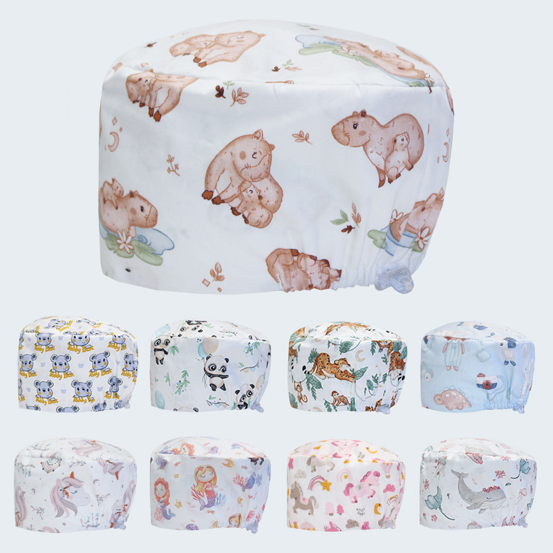 手術用帽子 女性用 純綿 看護師用 小花柄帽子 手術室専用帽子 大きな頭囲調整バックル付き 包頭帽 男性用 漫画柄