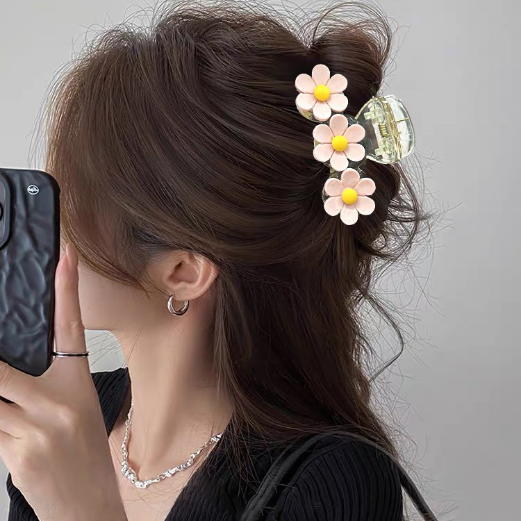 韓国式insプラスチックヘアクリップシンプル気質大後頭部ヘアクリップ花クリップサメクリップ