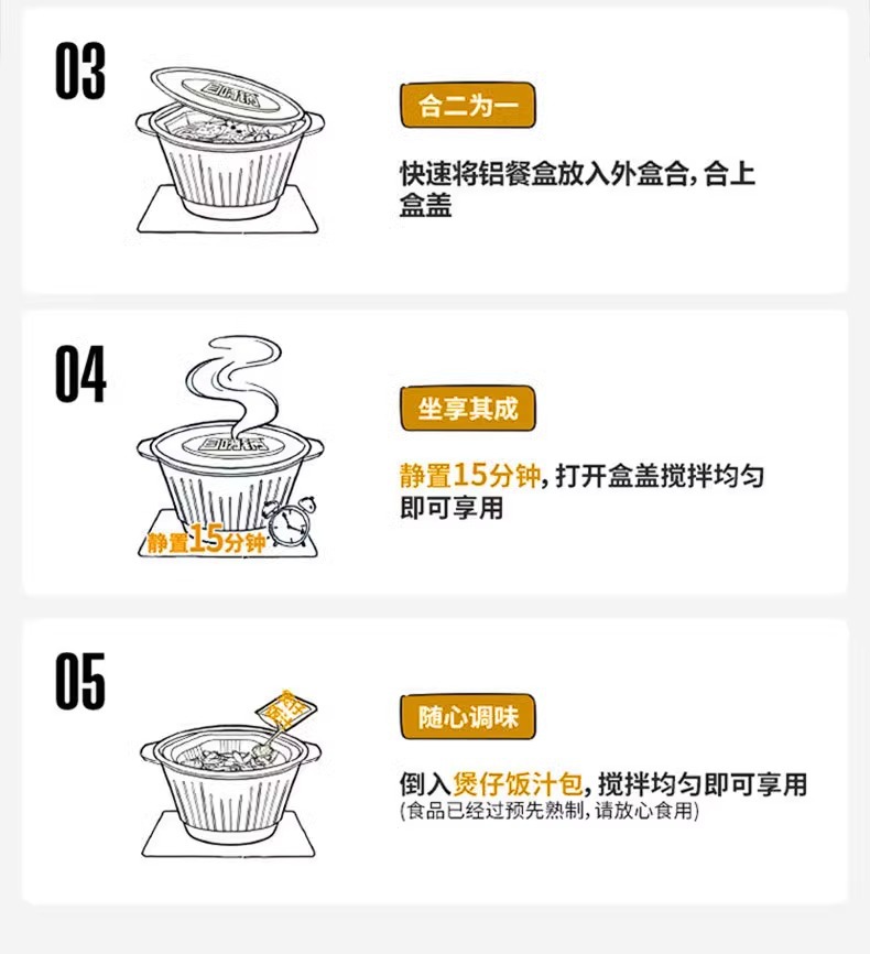 自熱式炊飯器、土鍋ご飯、簡単調理のインスタント食品、朝食、昼食、夜食、便利な即席食、箱売り卸売