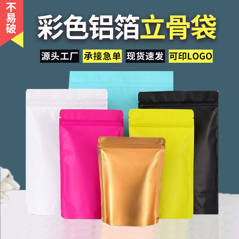 カラーアルミ箔ジップロックバッグ、マット加工袋、釣り餌、茶葉、粉末包装袋、ブラインドバッグ、自立型密封袋