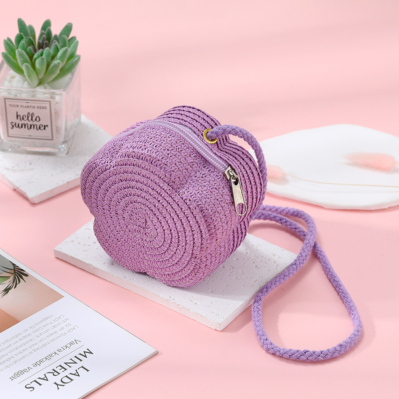 夏の子供のわらバッグ織りクロスボディバッグ少女バックパック海辺ビーチわらバッグかわいいミニ小銭入れ