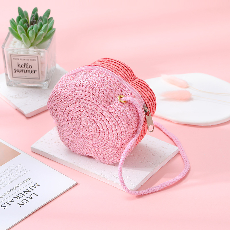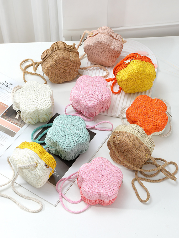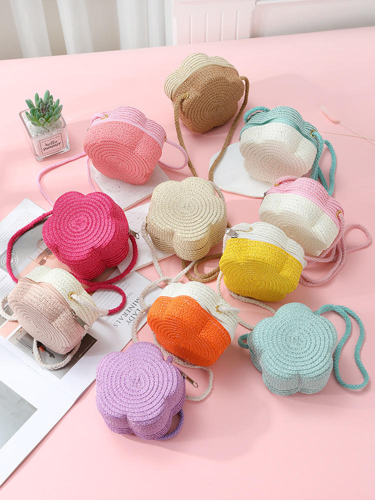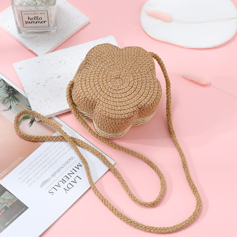 旅行や外出に最適な多用途でおしゃれな梅の花編みバッグ、2025年新作、爽やかで自然で可愛い子供用草編みショルダーバッグ