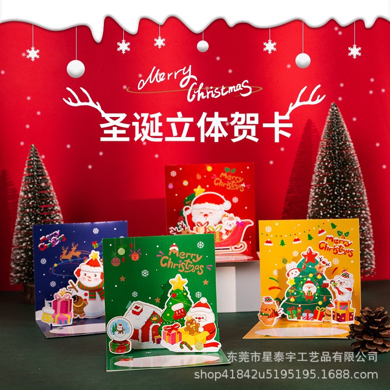 新しいクリスマス立体創意グリーティングカード平安夜クリスマス祝福メッセージ3d立体小カード