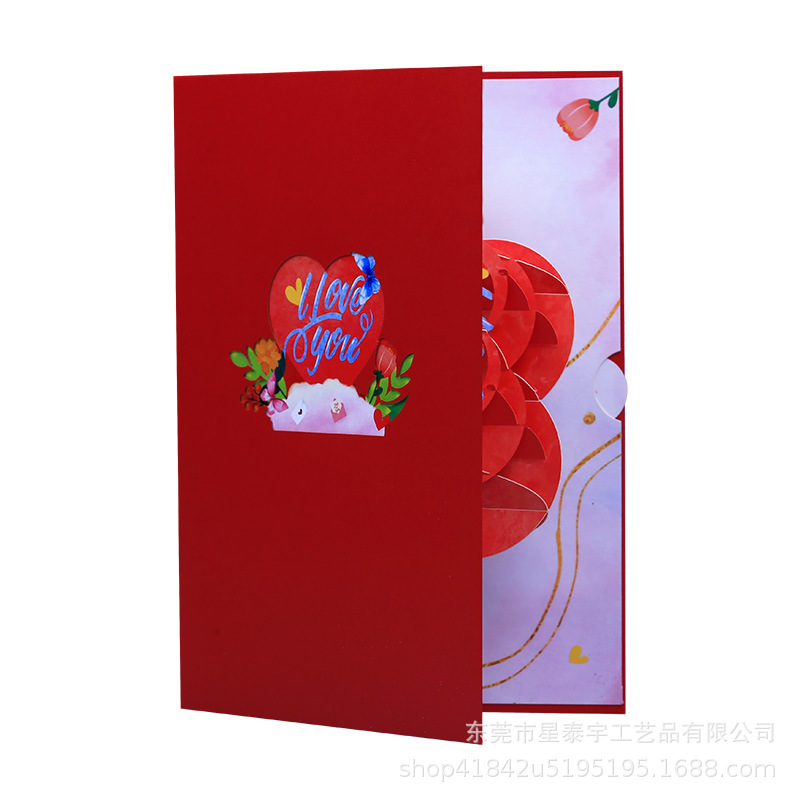 新しい手作り愛蝶バレンタインデーグリーティングカードins風創意ハート型3d小清新プレゼント祝福カード