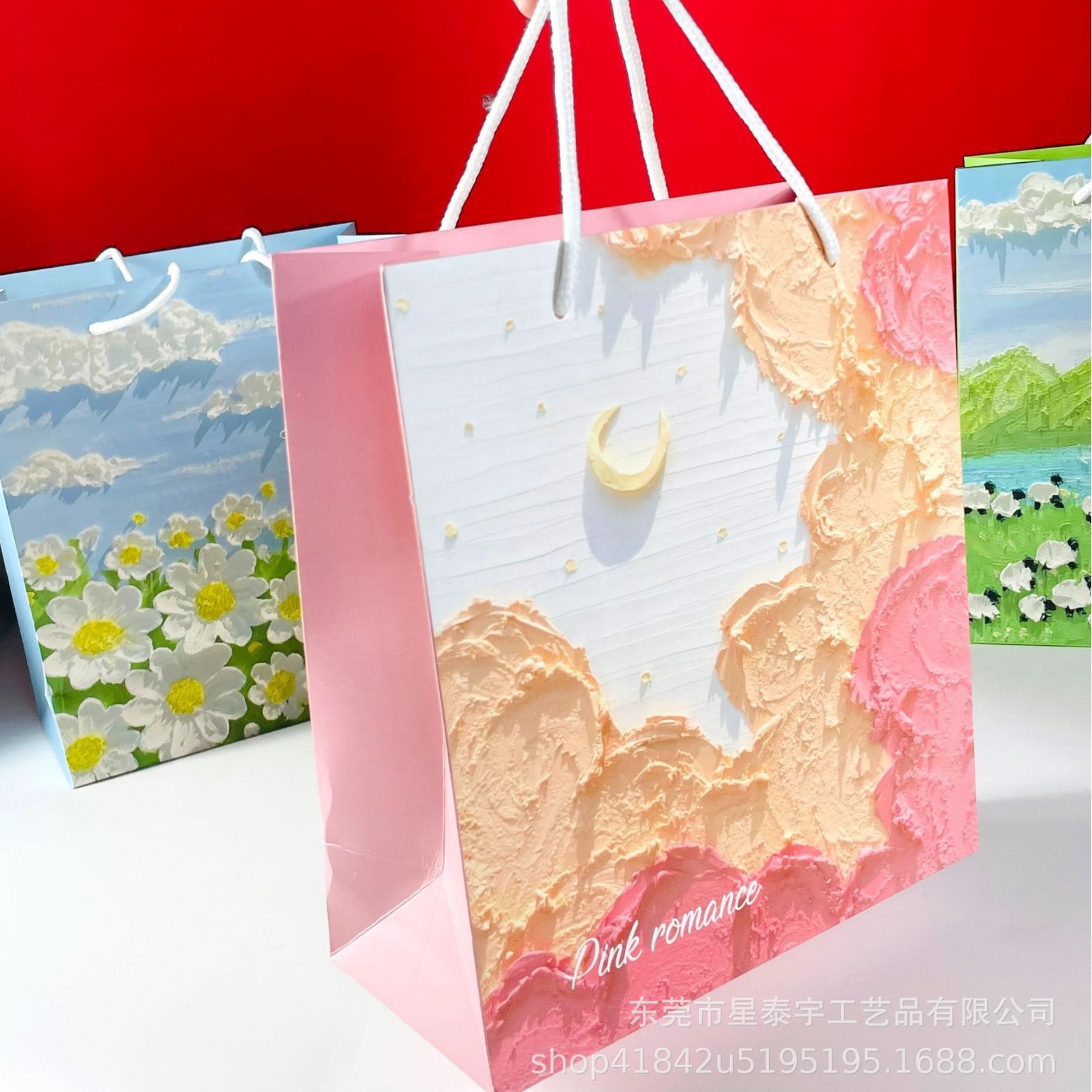 油絵パターン紙袋手提げギフト袋高級感包装紙袋ギフト紙袋ギフト袋カスタム