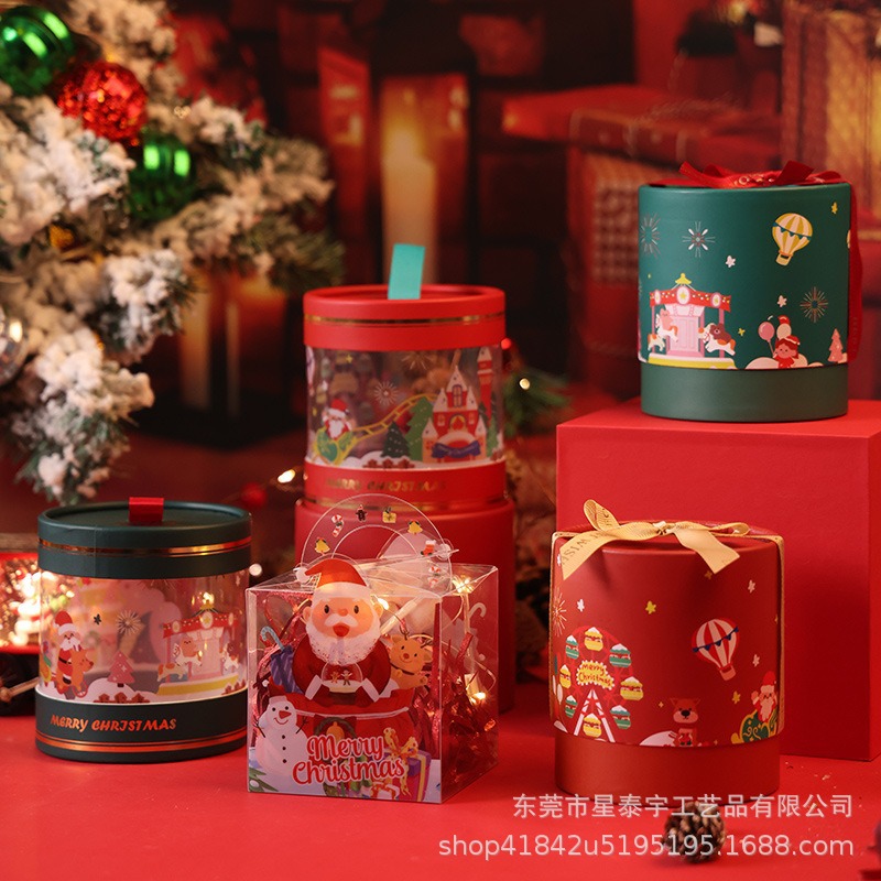 新しいクリスマス円形PVC透明ギフトボックス平安夜キャンディーリンゴ包装箱クリスマスギフトボックス現物