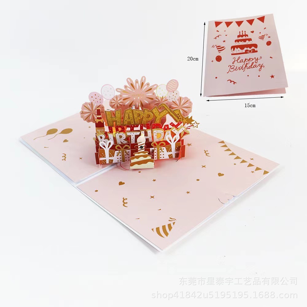 クリエイティブ3d立体グリーティングカードピンクの誕生日お祝いケーキランプ付きキャンドルカラフルな音楽照明手作りカード紙