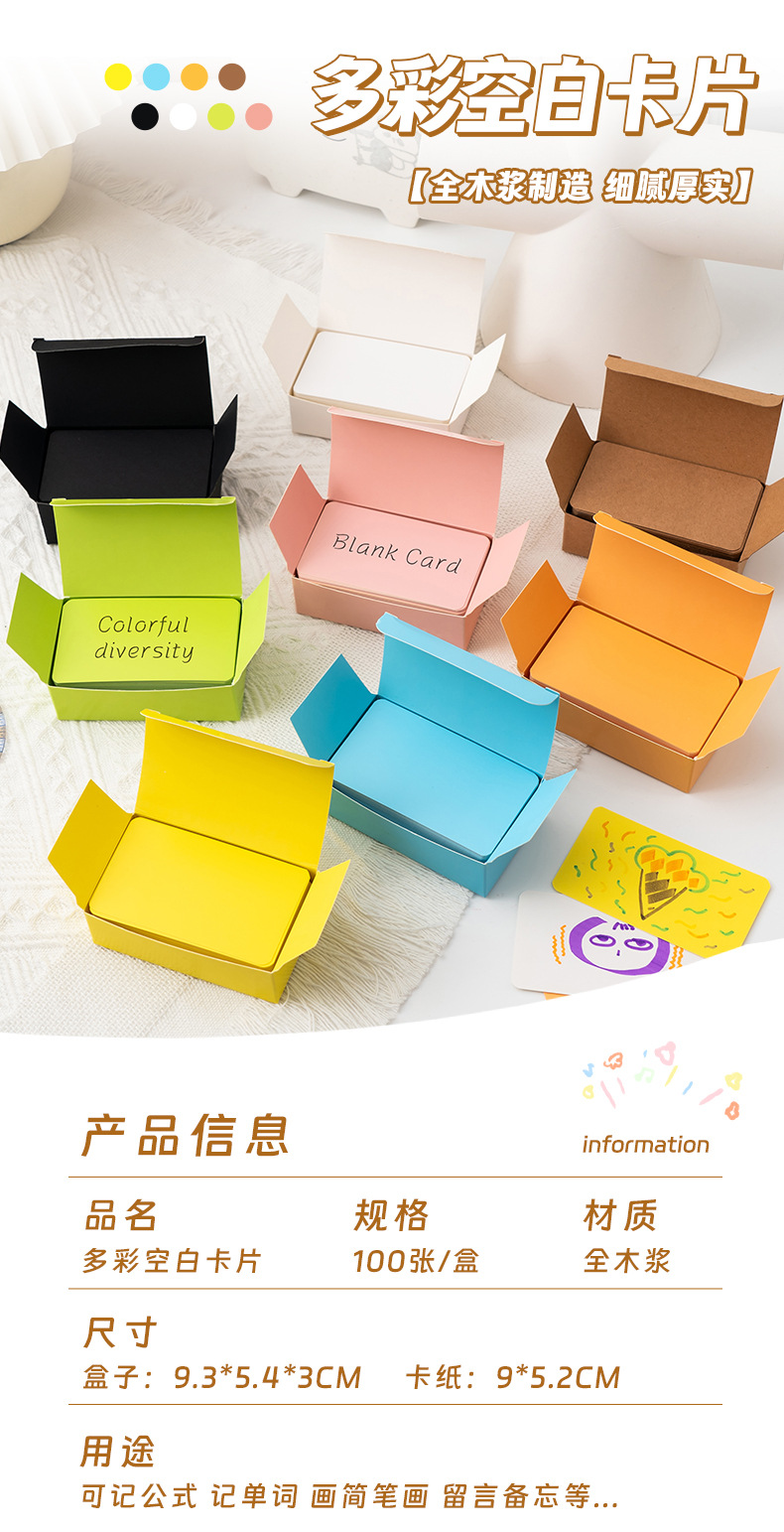 【100枚/ケース】単语カードブランク小カード纸ハードカードポストカードしおりメッセージメモリーカード豆本