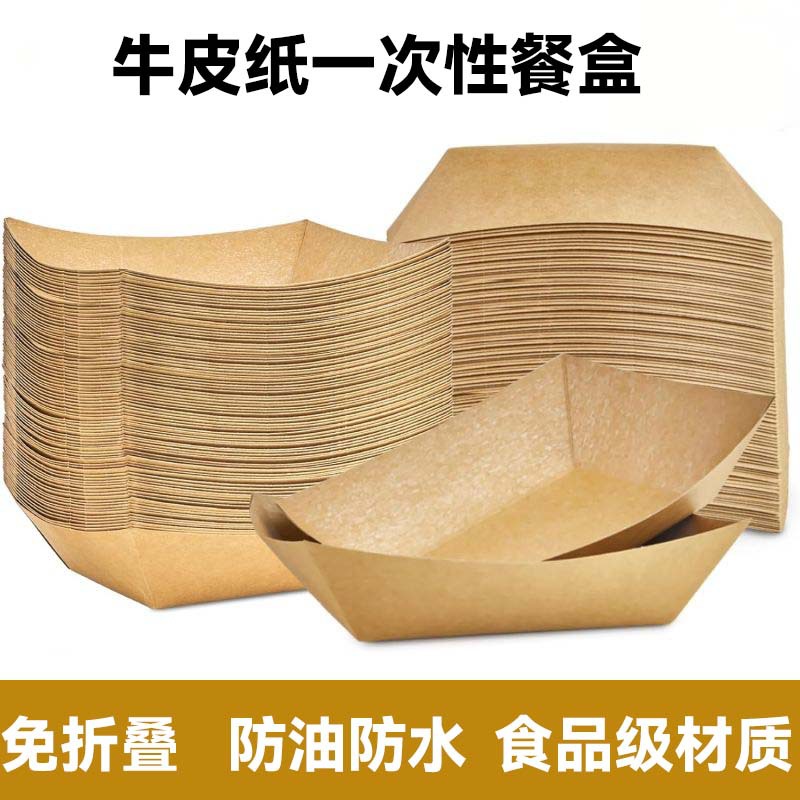 ロングクラフト紙使い捨てコーティングボートボックス耐油包装箱オープンボックスピクニックボックス揚げ物包装箱