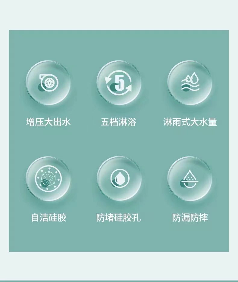 強い増圧シャワーをかけて超高圧シャワーヘッドをマッサージします。