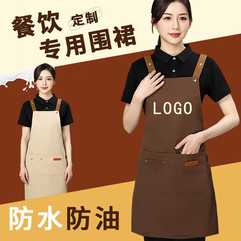 アマゾンクロスボーダー帆布エプロンカスタム防水防油キッチン飲食ミルクティー作業服汚れに強い