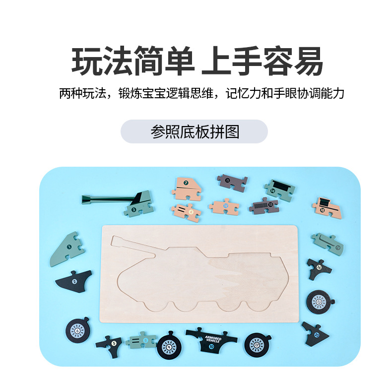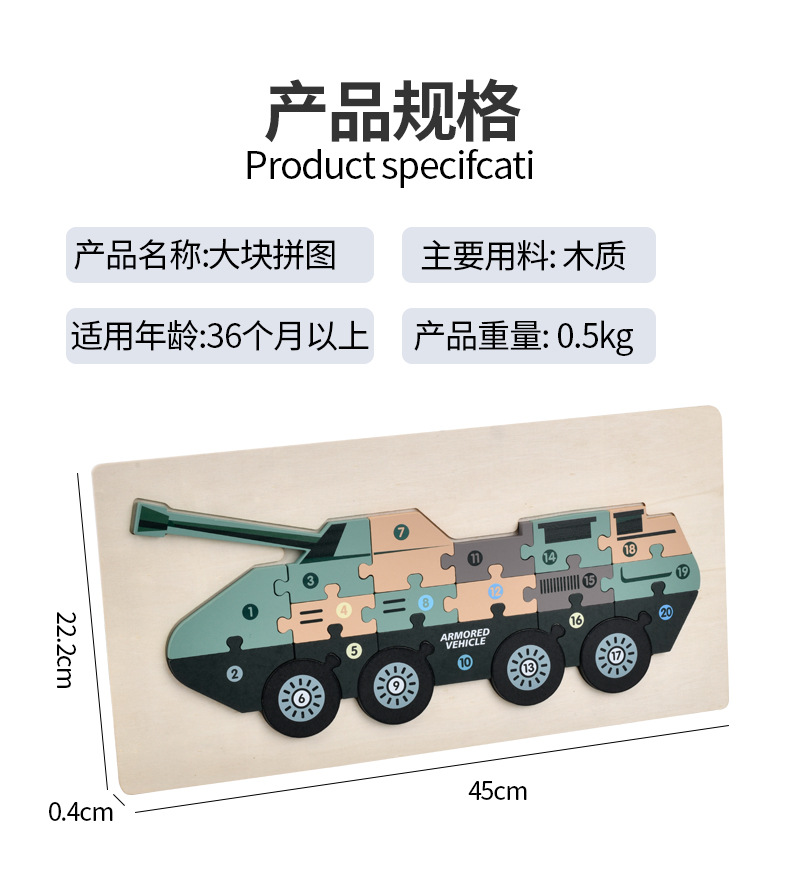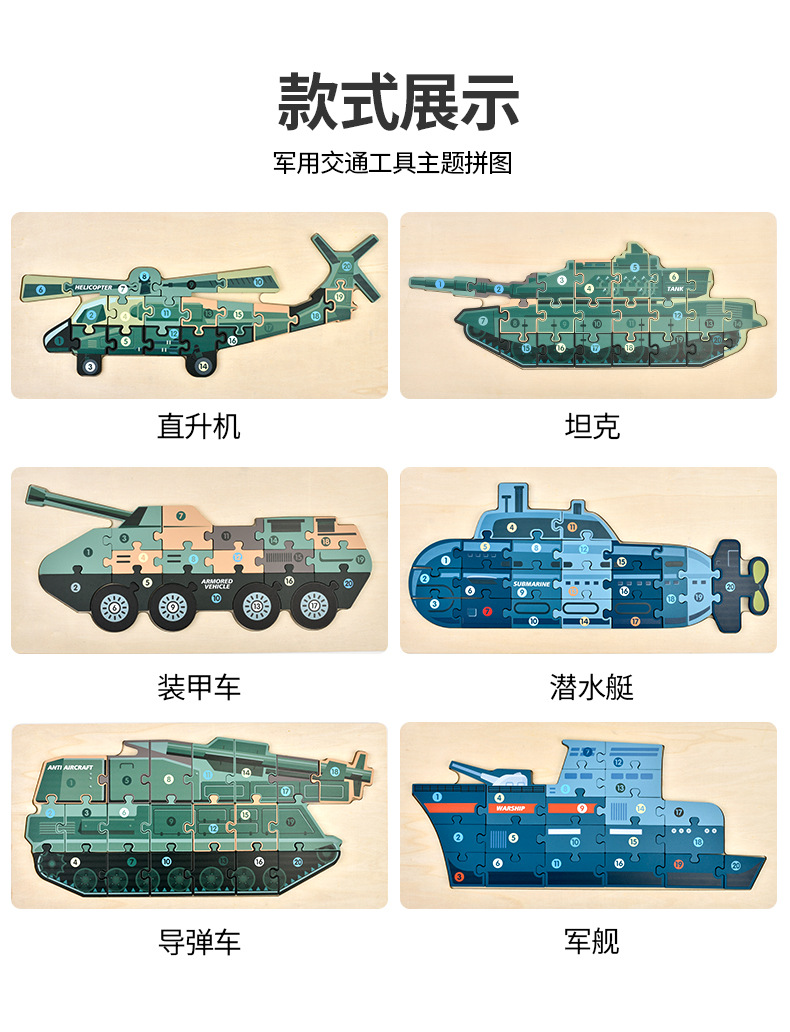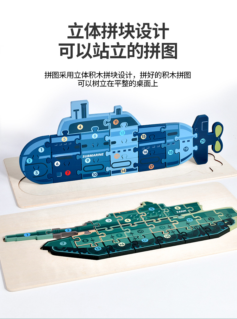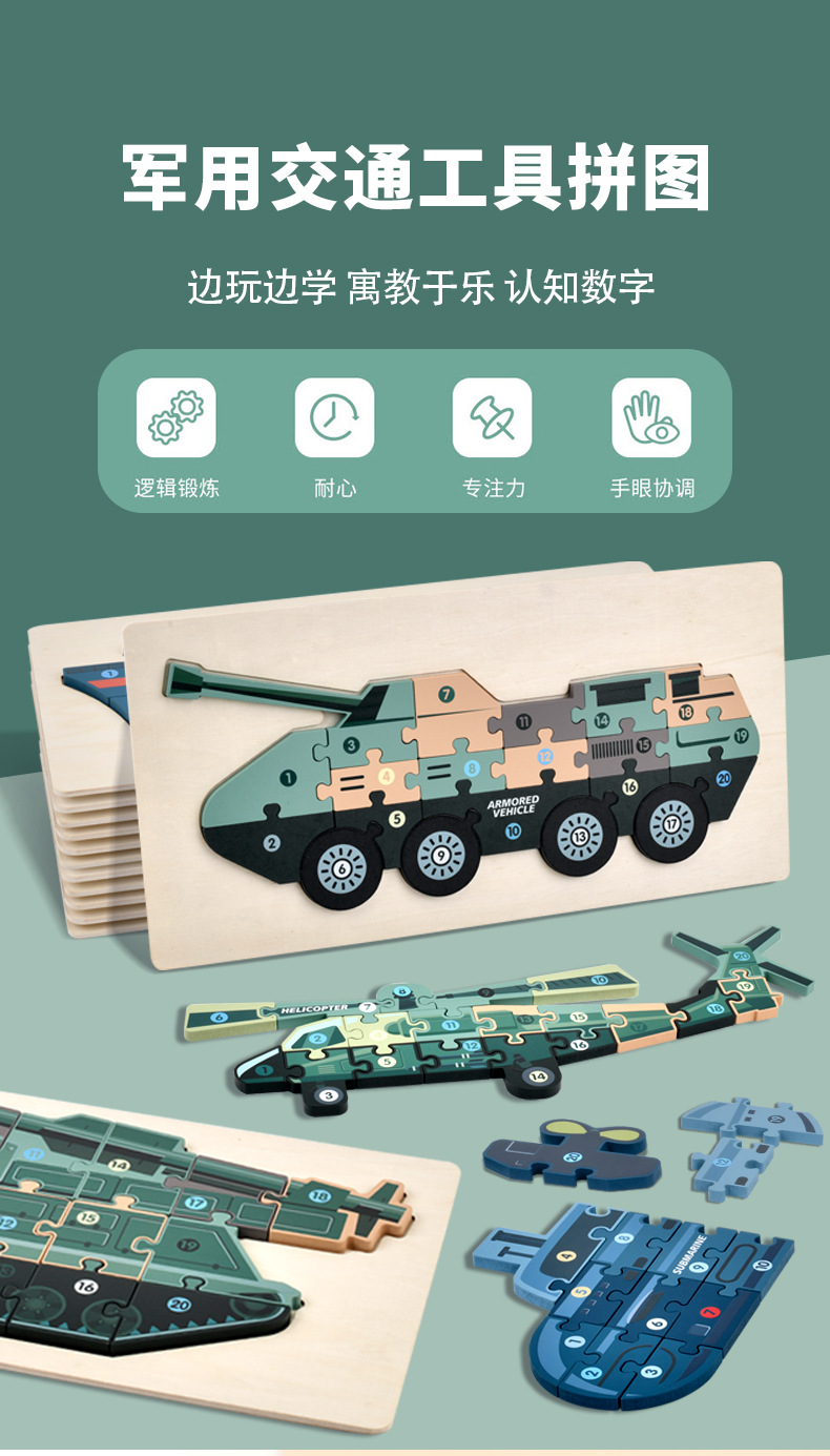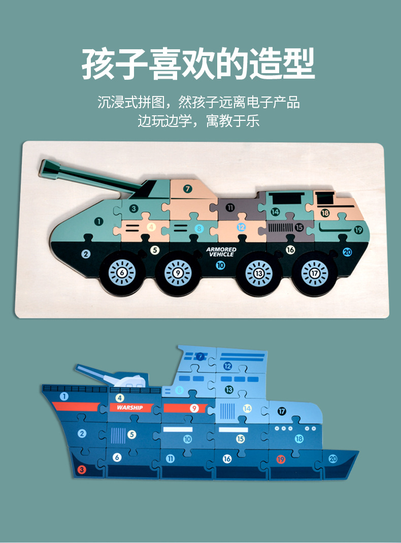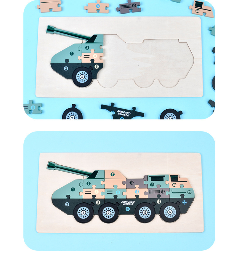 男の子の軍事車の戦車の木製の立体のパズルの子供は立体のパズルの飛行機のおもちゃを詰めて卸売りします。