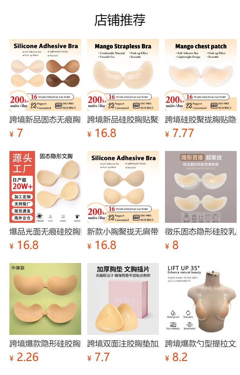 国境を越えて人気の目に見えないシリコン胸パッド、厚手の露出防止胸パッド、マンゴーカップ、小胸を大きく見せるプッシュアップ胸パッド、卸売
