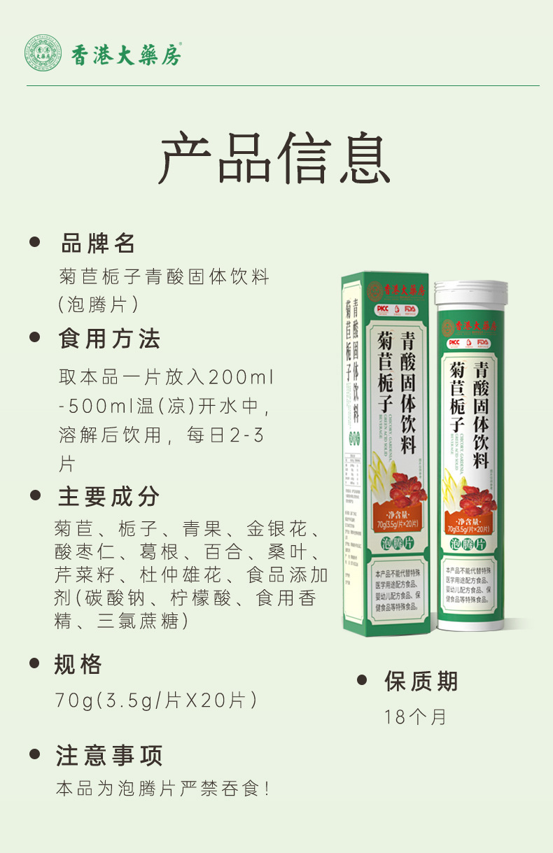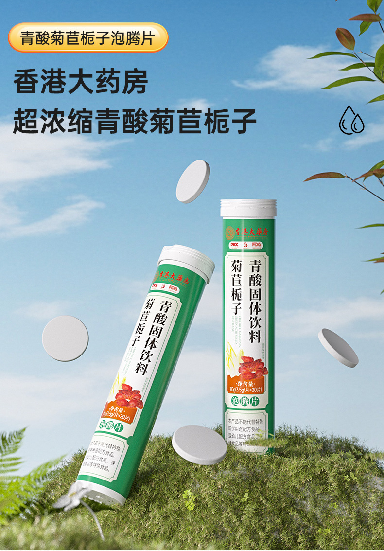 菊苣栀子青酸泡腾片降苏打水酸碱性电解质vc泡騰片可一件代发