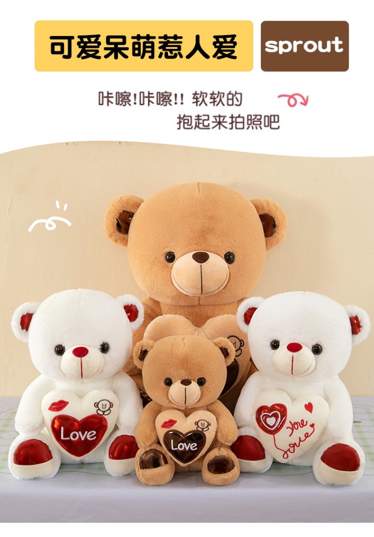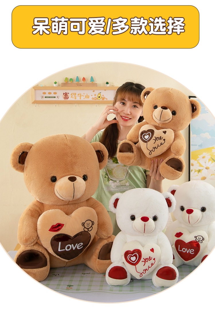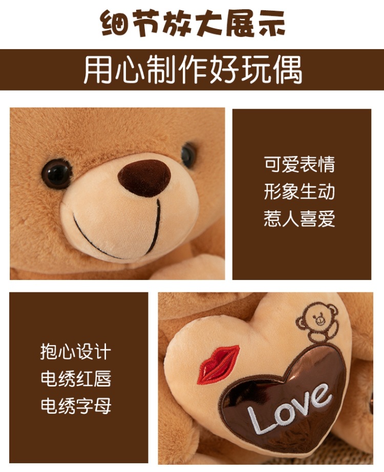 爱心熊公仔毛绒玩具抱心熊可爱玩偶发光熊玩偶儿童礼物玩具批发