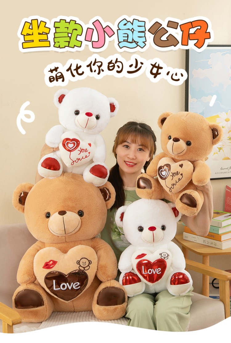 新作漫画風ハートベア バレンタインデー ハート抱きベア ぬいぐるみ ギフト 女の子向けおもちゃ 卸売