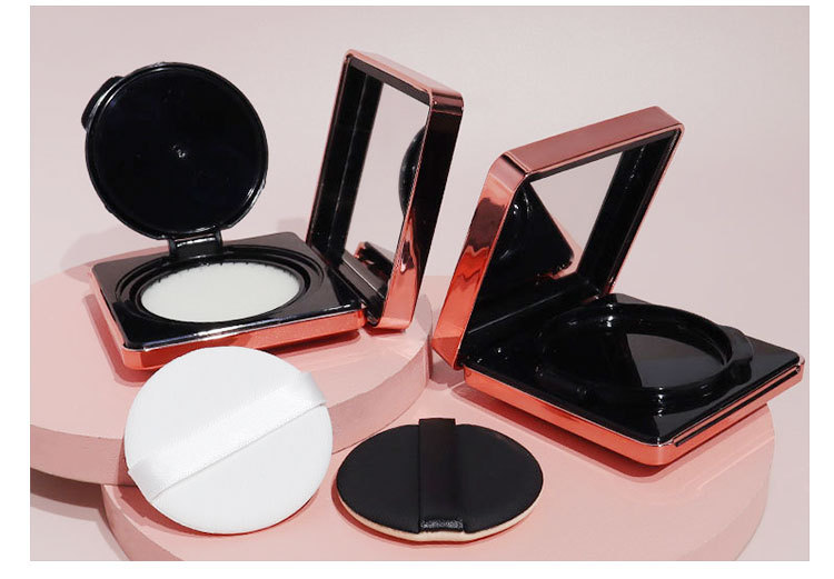 現物の四角い超薄バラ金のエアマットの箱の粉餅の空の箱の粉底液bbクリームは箱のメークの包装材を分けて詰めます。