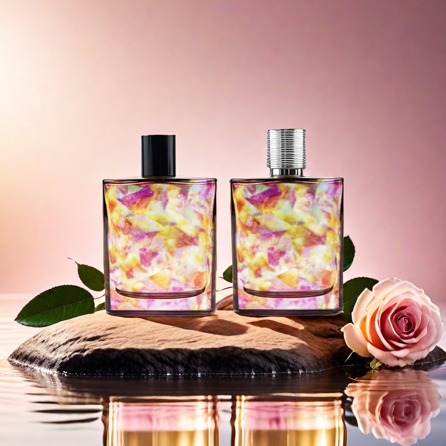 wp100ml カラフルでユニークなガラス製の正方形の香水瓶、スプレーボトル、空瓶、キャップと組み合わせることができます