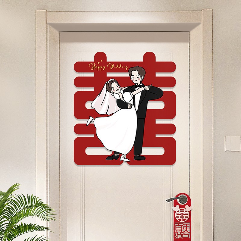 結婚部屋の配置結婚女性の寝室のドアの装飾の字のスーツの結婚式の喜字の扉は結婚祝いの用品の大全を貼ります。