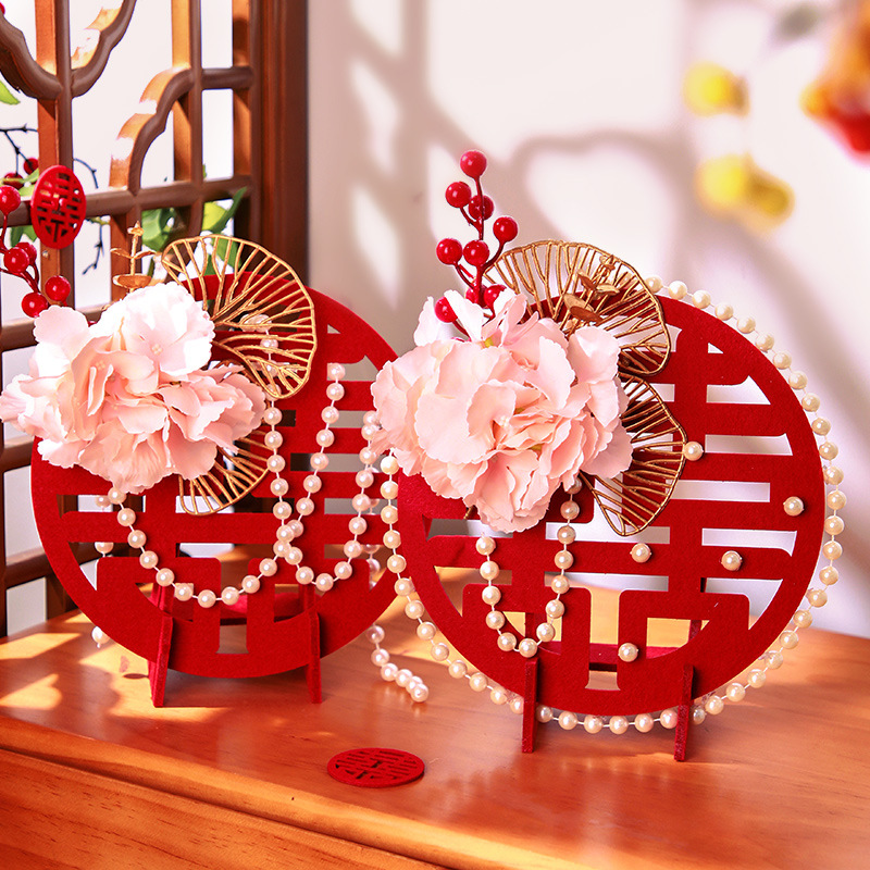 立体喜字置物結婚専用結婚部屋配置婚約寝室客間装飾結婚式デスクトップ双喜置物台