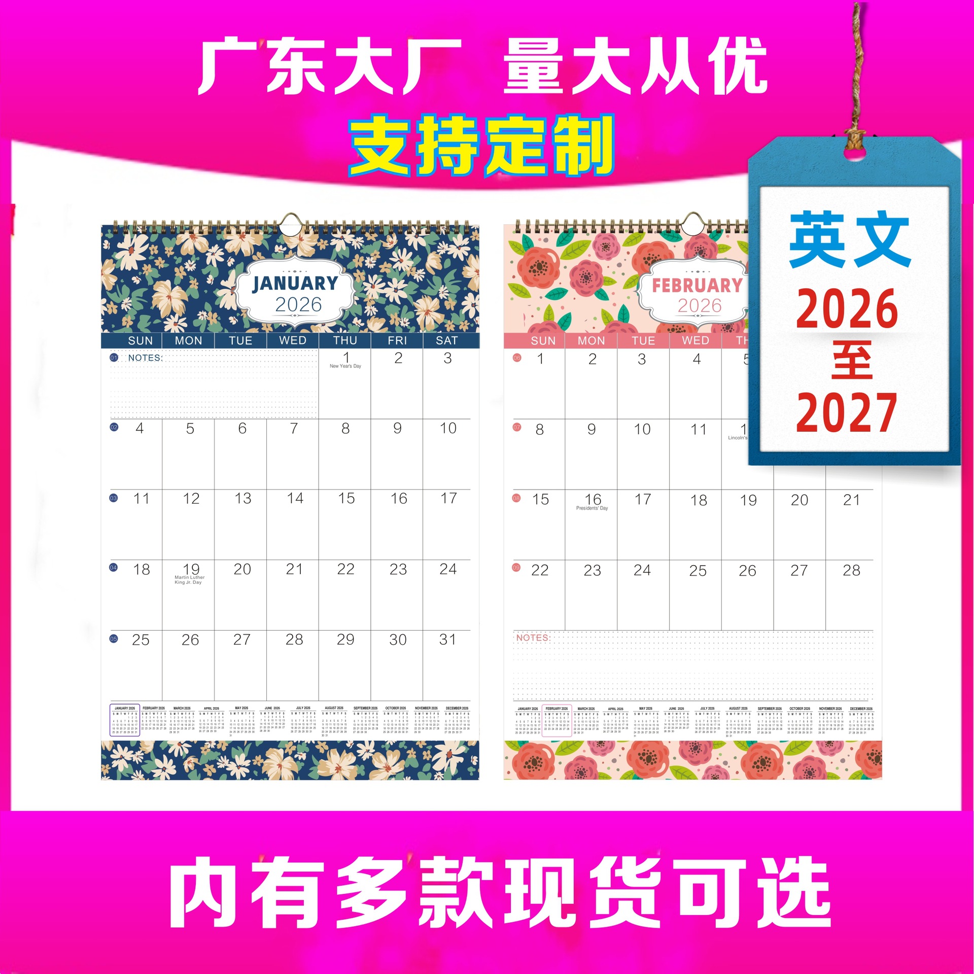 新しい 2026-2027 クロスボーダー英語壁掛けカレンダー YO コイル壁掛けシンプルクリエイティブカレンダーヨーロッパとアメリカの卓上カレンダー