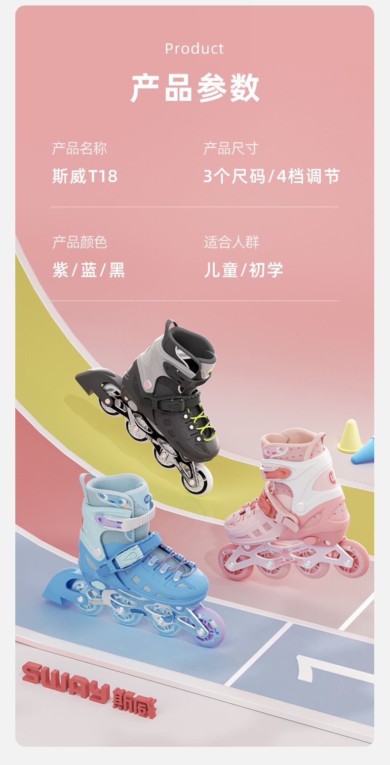 SWAYスウィートローラースケート靴プロ子供6-12歳初心者調節可能単列輪可ブレーキスケート靴