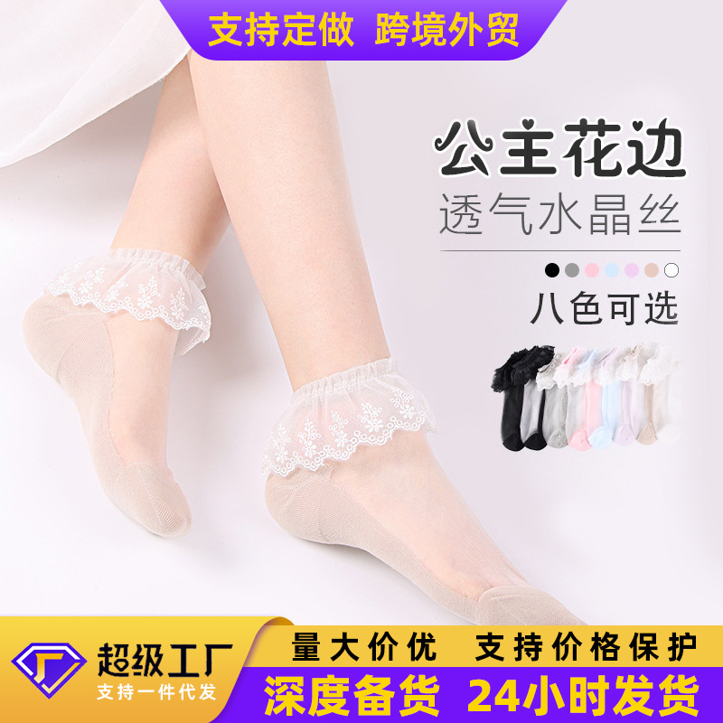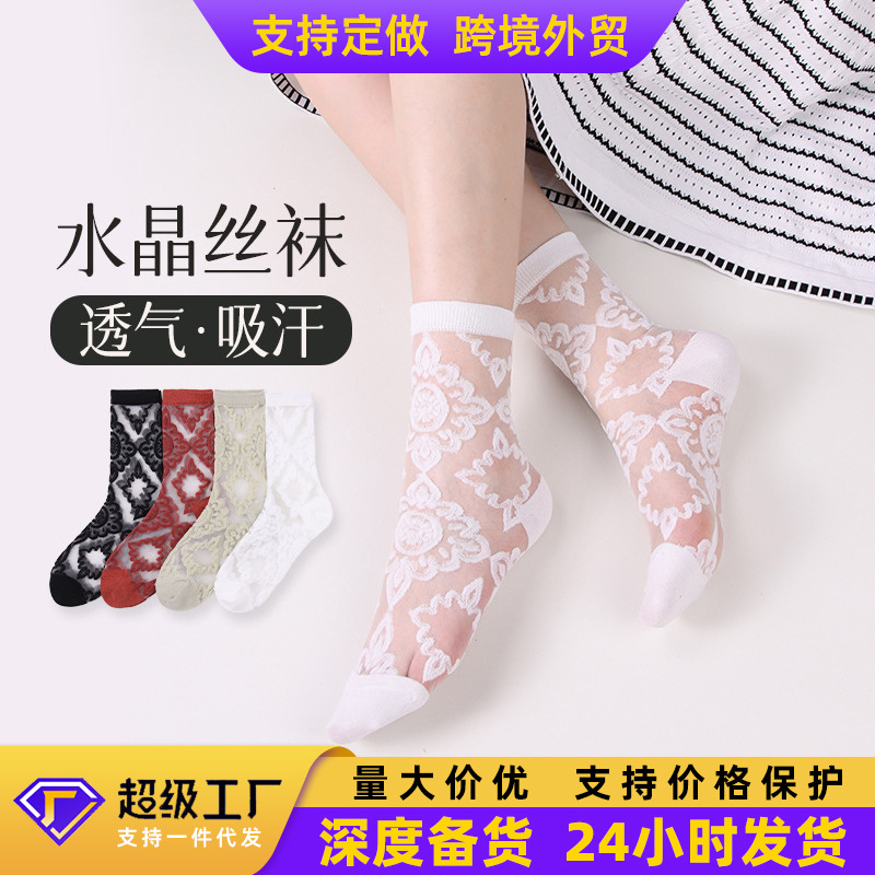 女性用春夏ソックス、レディースシルクソックス、夏用薄手レースソックス、人気クリスタルソックス