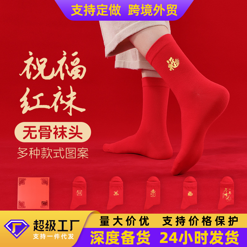鴻運の靴下の本命年の赤い靴下の新年のカップルの結婚の贈り物の2024秋冬の男性のストッキングの海寧の靴下