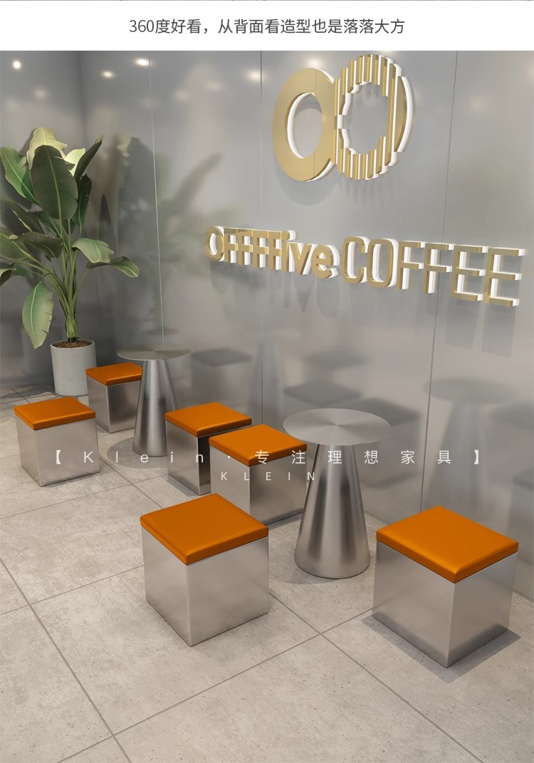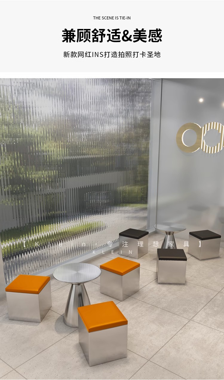 ネット赤ステンレス工業風カード座ソファー壁カフェミルクティー店のテーブルと椅子の外に長いベンチの組み合わせが置かれている