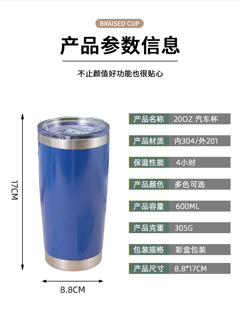 アマゾン新製品20オンス自動車カップ卸売り創意携帯車載アイスカップ304ステンレス保温カップ