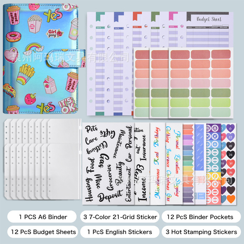 クロスボーダー起爆マカロンバインダーノートブックa6漫画ステッカークリエイティブ現金貯金本予算手帳