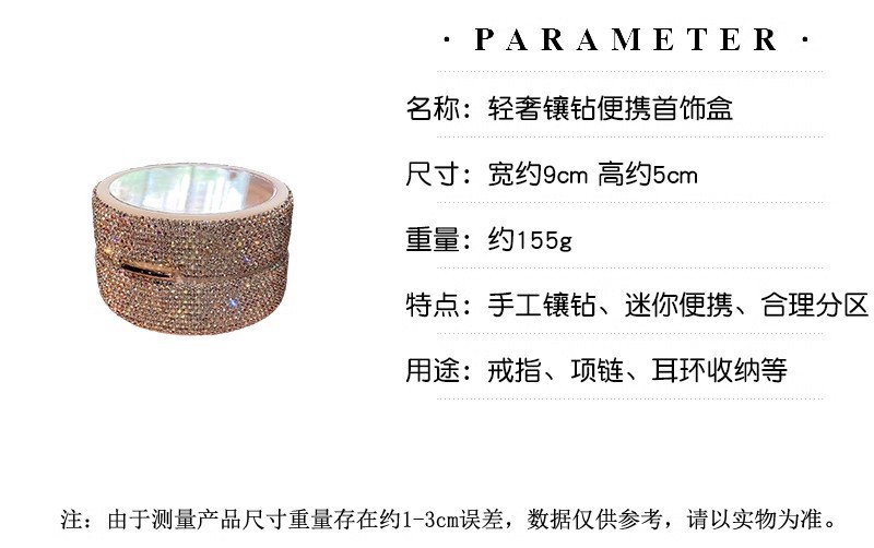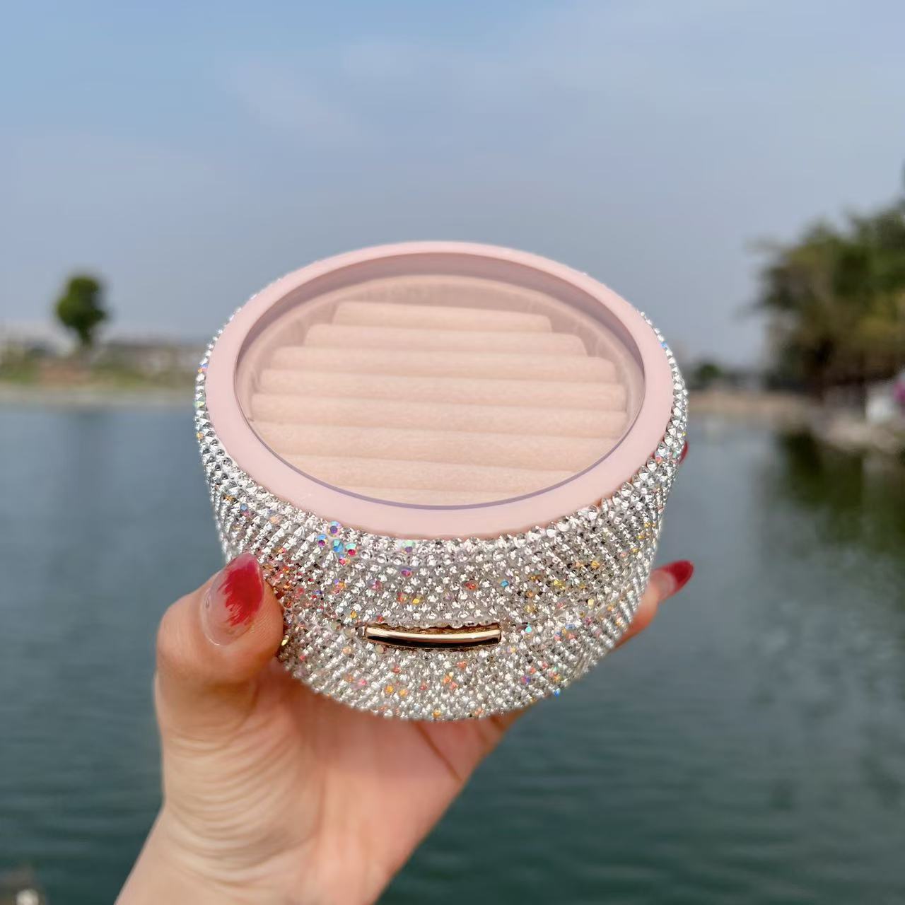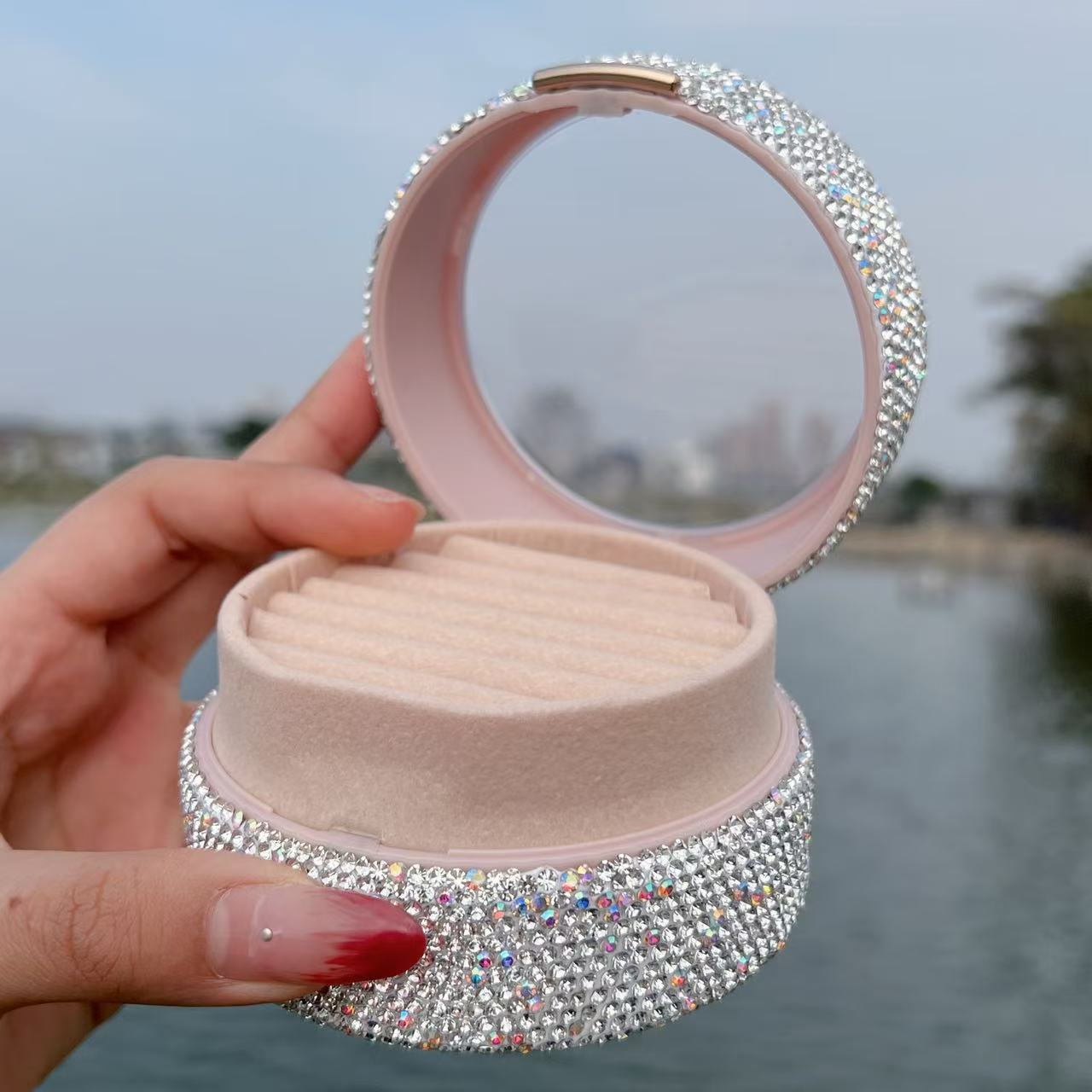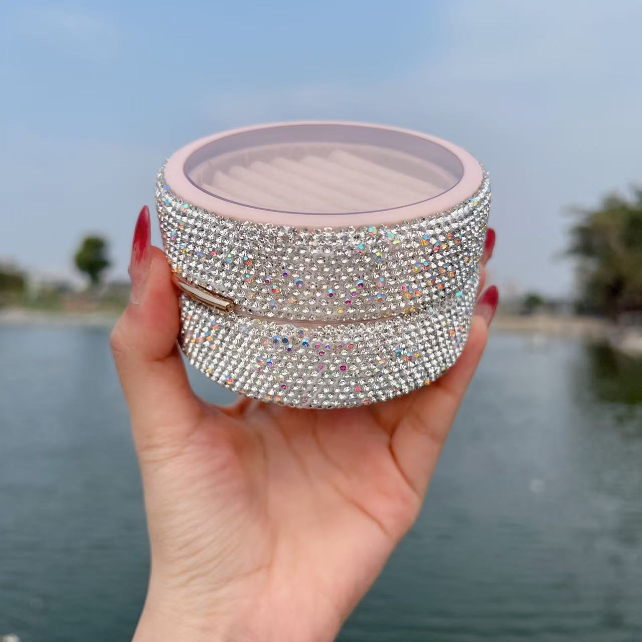 ダイヤモンドがちりばめられたポータブルジュエリーボックス、トラベルジュエリー、口紅、リング、ネックレス、イヤリング、コンパートメント収納と整理、海外ホットセール