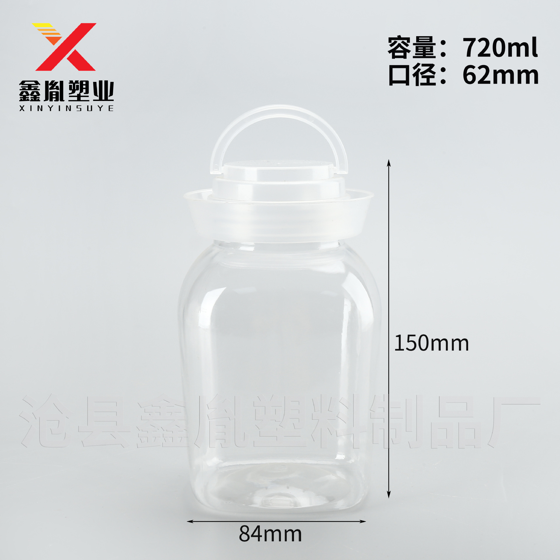 メーカー現物透明プラスチック缶密封角型貯蔵タンク蜂蜜瓶62口径分注瓶調味料瓶
