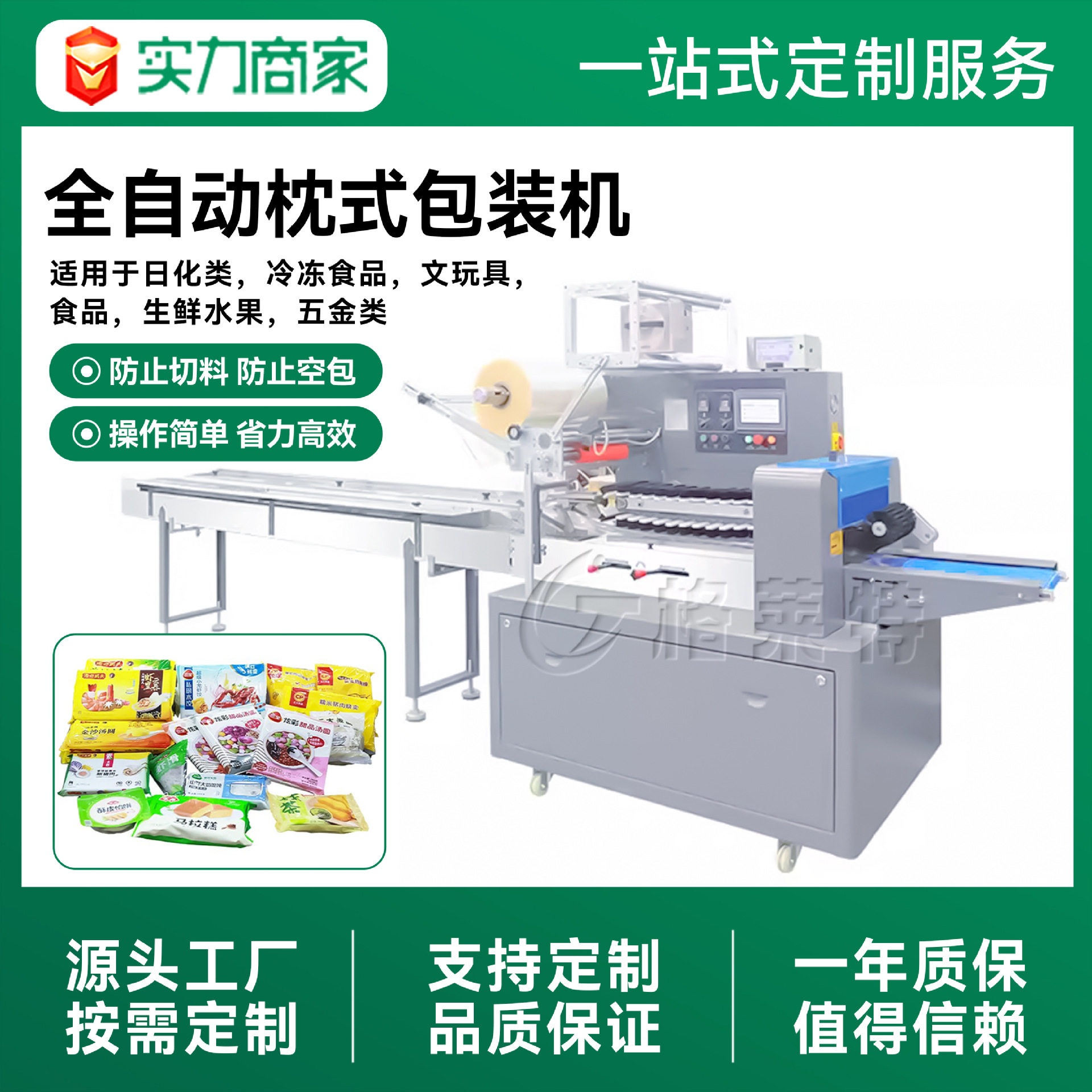 全自動高速枕式包装機金物野菜果物ビスケットキャンディーパン食器多機能包装機
